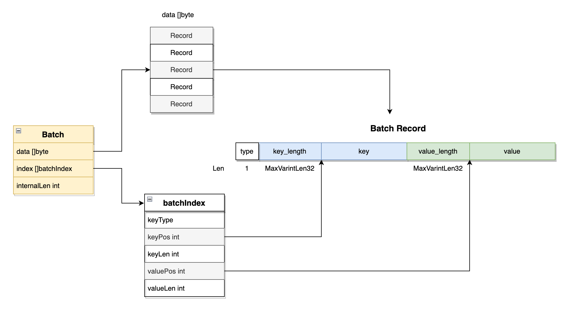 Batch 主要存储了2个数据项,分别是data、index、internalLen:
