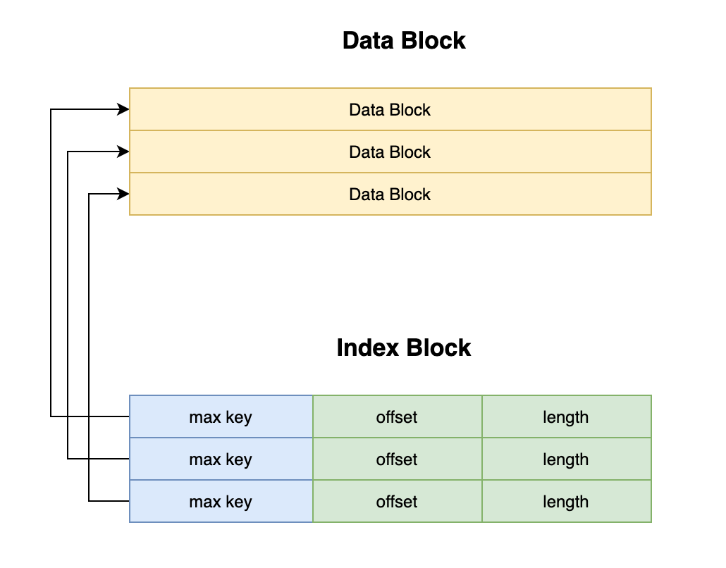 - max key: 这个Block中存储的最大的 key,以便于用二分查找来定位key在哪个block