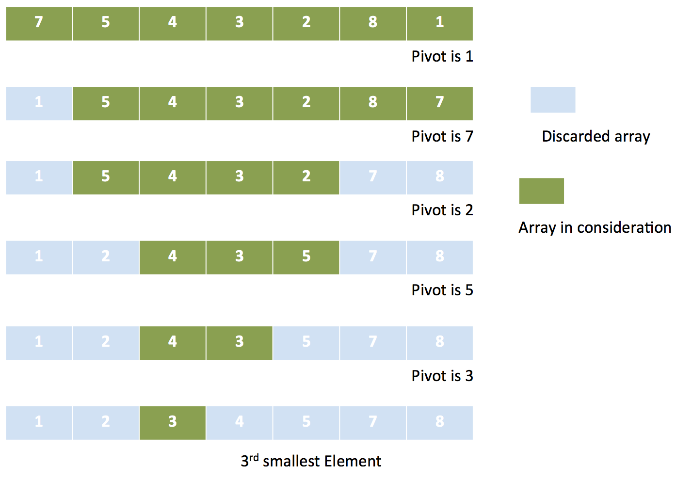 我们可以将快速排序改进一下:每次基于pivot将元素分为大小两类后,舍弃目标元素不会存在于其中的那个部分。具体算法如下: