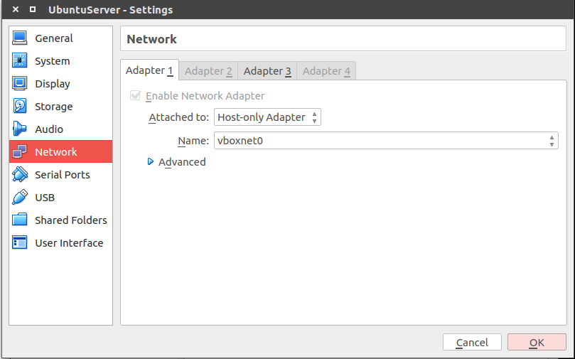 想要用虚拟机配置一个hadoop单机版玩一玩,于是用virtualbox装了一个Ubuntu Server 16.04的虚拟机。虚拟机默认使用的是NAT模式的网卡。由于要在宿舍和实验室两个地方使用它,NAT模式下虚拟机的IP会自动变化,也不能给它设置静态IP,故给其添加一个新的网卡。